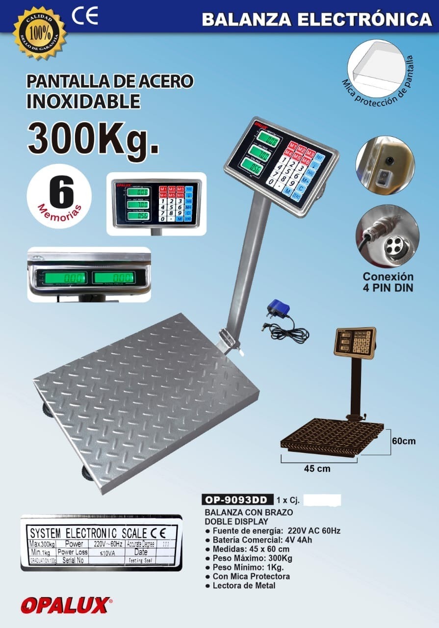BALANZA 300 KG OPALUX PANTALLA DE ACERO INOXIDABLE